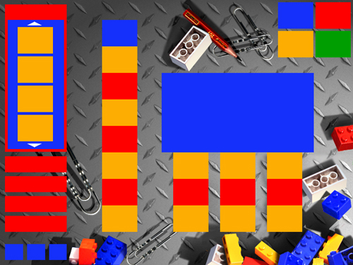 As the combination of programming elements within the Mindstorms software was of a modular nature, a parallel visual metaphor had to be found, hence the jigsaw puzzle type elements I eventually went with. I'd tried experimenting with images of LEGO bricks themselves, but found that the dimensions that made them recognisable didn't lend themselves to contain enough essential numbers and text within each shape. What's more, the quintessential brick studs would be concealed next to additional contiguous brick elements.