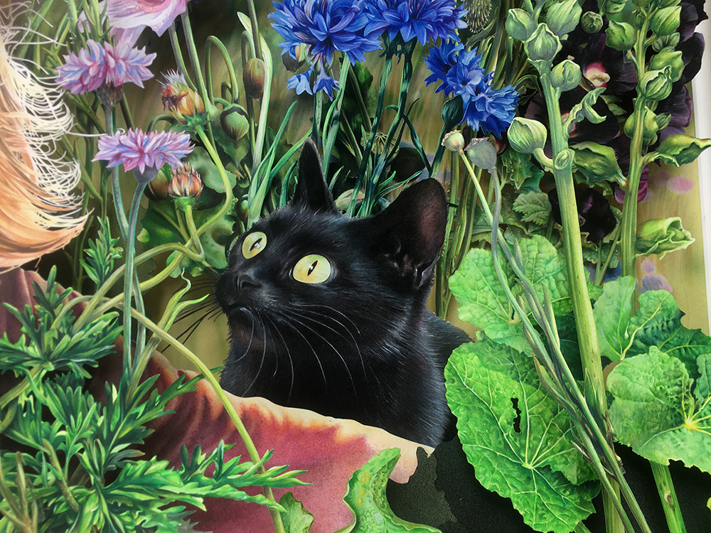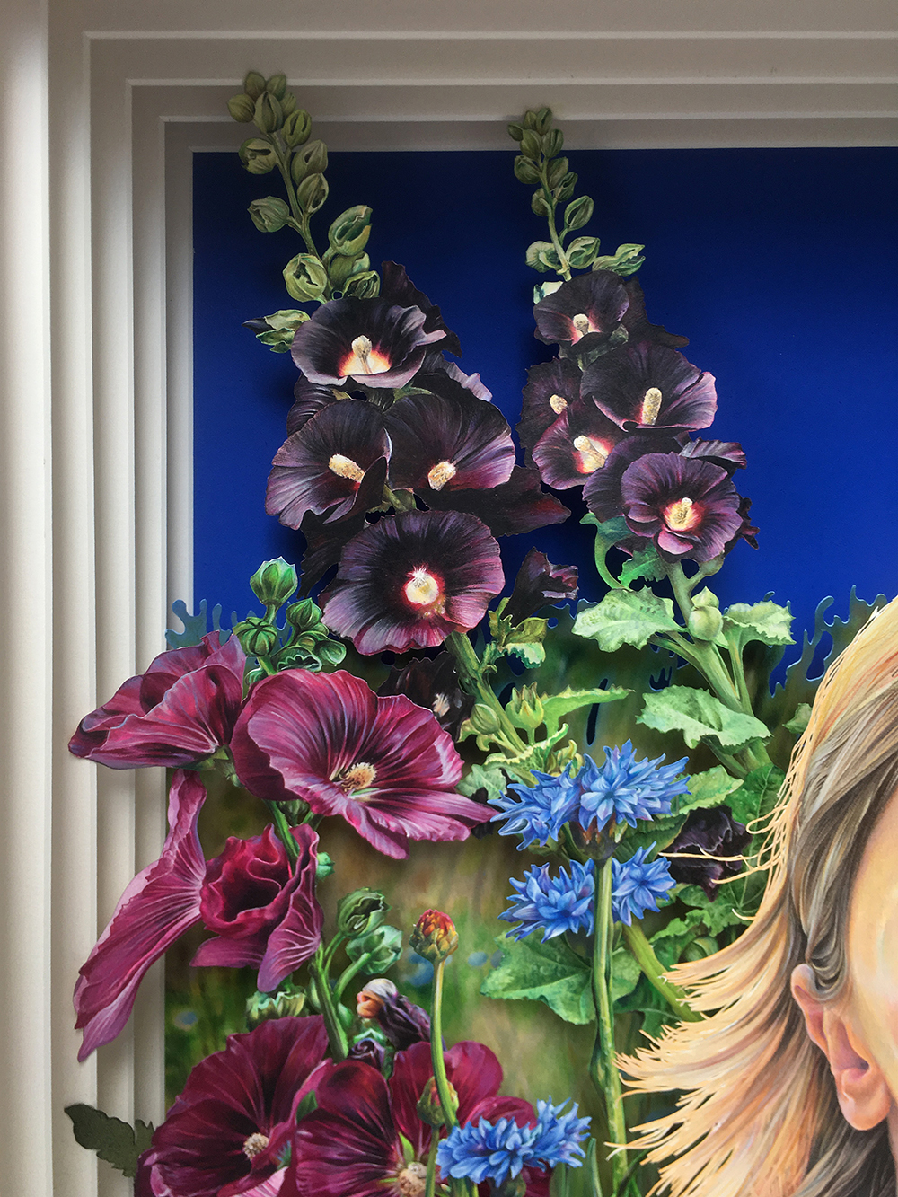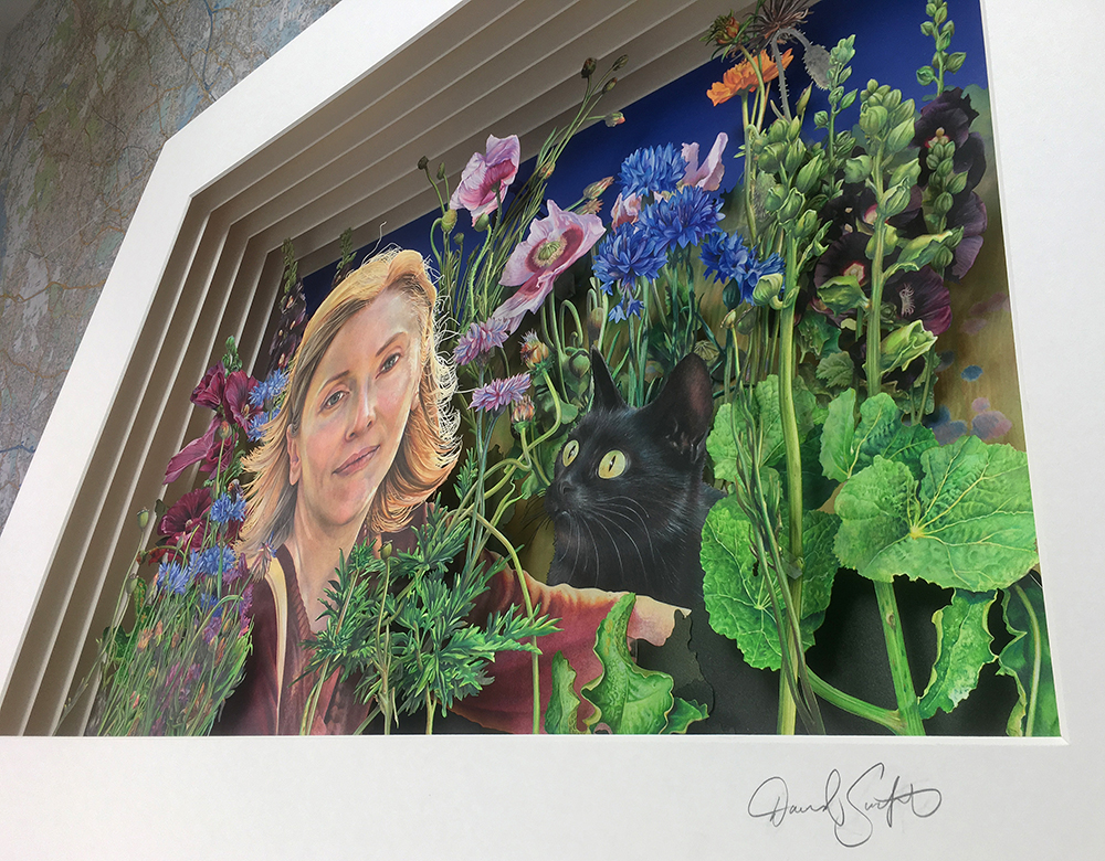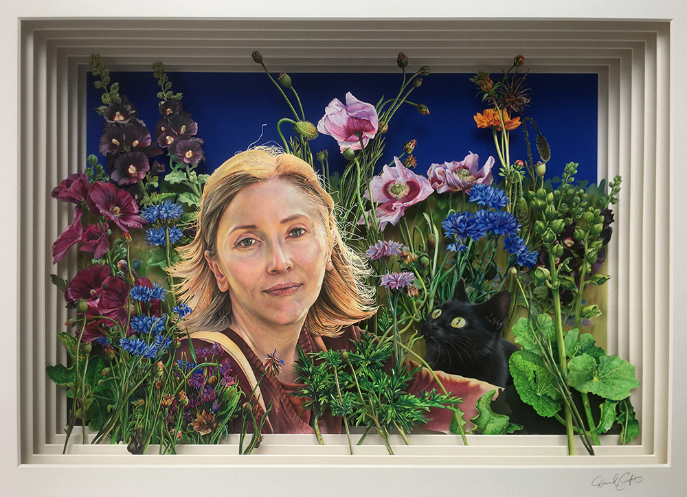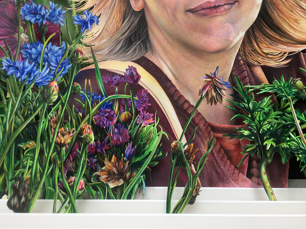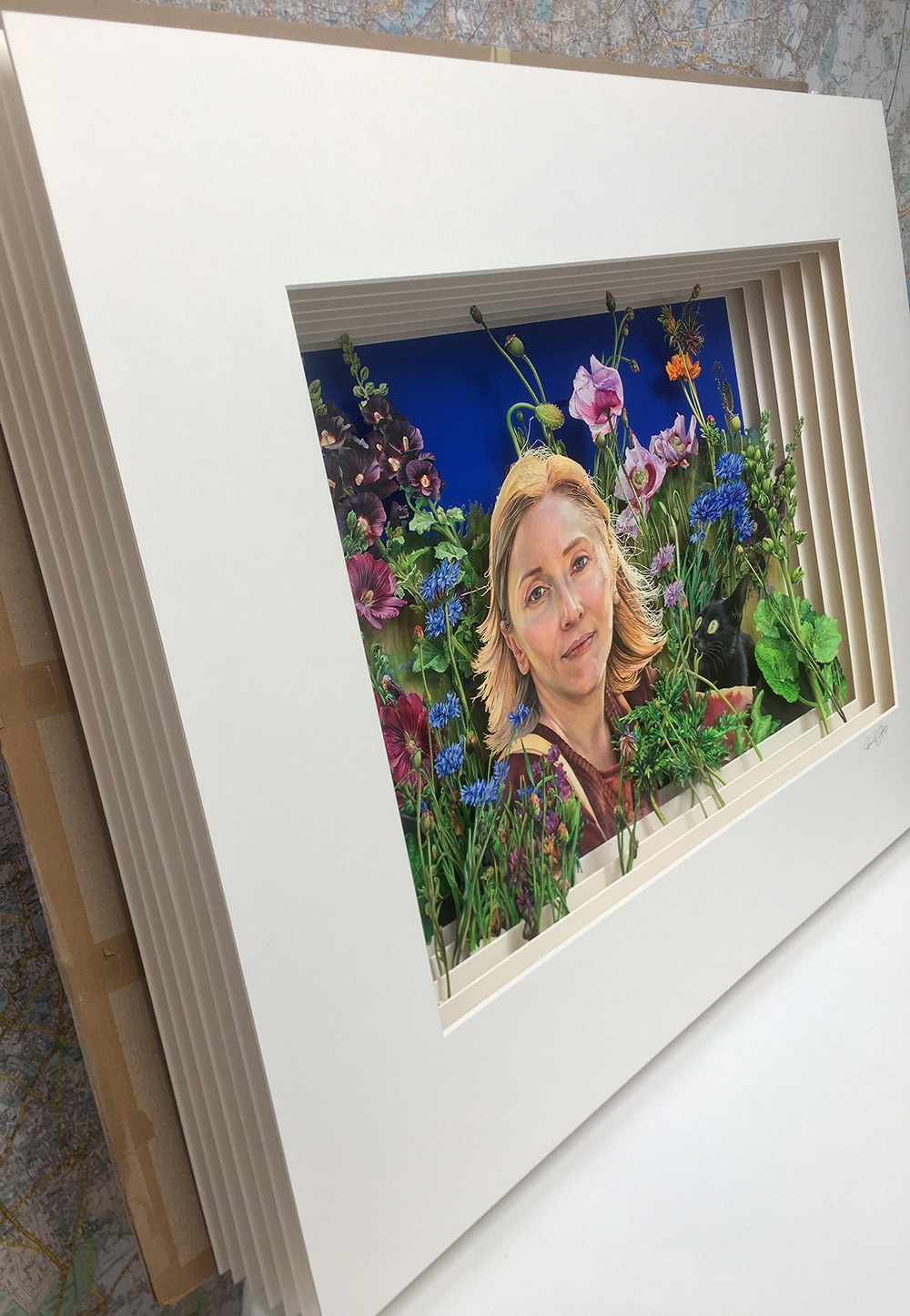 Coloured pencil on cold pressed cotton paper, cut out and glued, mounted in relief in layers.