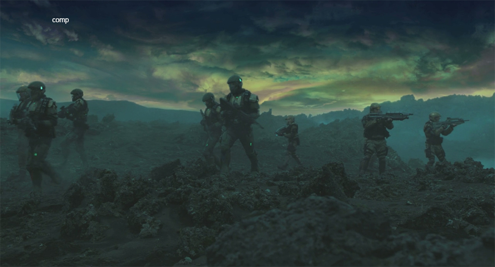 One of three huge skies made for planet-scale space station shard (featured as a matte if you mouse-over the abouve image). Unfortunately all the skies were combined with other terrain dmps and live action shots in the final edits rather than individual matte paintings or even comps. It leaves the feeling that they were clumsily integrated.