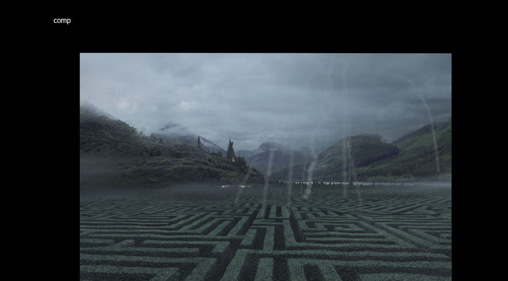 Dmp of Hogwarts to fill frame. Maze added in comp.