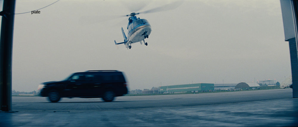 Background replacement to give the impression that this is an airport near New York. The original plate was shot at a quiet aerodrome somewhere near Peterborough in the UK.