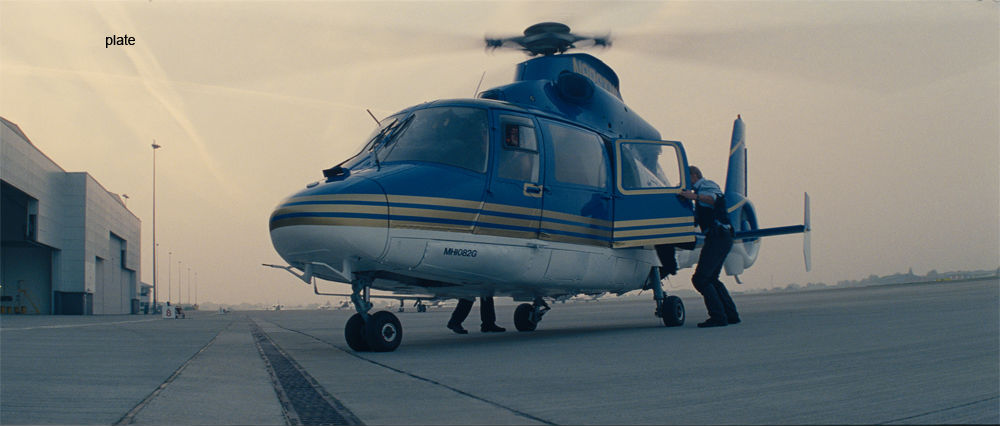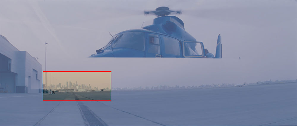 Background replacement to give the impression that this is an airport near New York. The original plate was shot at a quiet aerodrome somewhere near Peterborough in the UK.