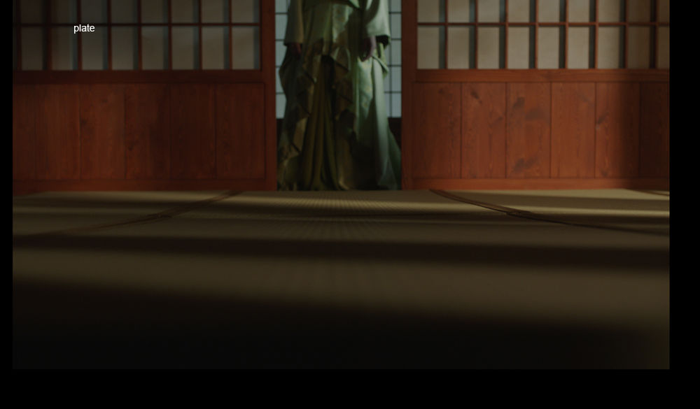 A foreground matte painting adding detail to the floor, as the plate was shot with a lot of foreground blur. The same level of detail was needed to match a CG spider created to appear in the immediate foreground, onto which there would be a change of focus from the rear to the front.