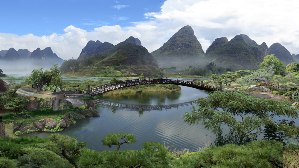 For a concept matte painting, this was a stab in the dark. There were as yet no guidelines, client or in house, to go on here.