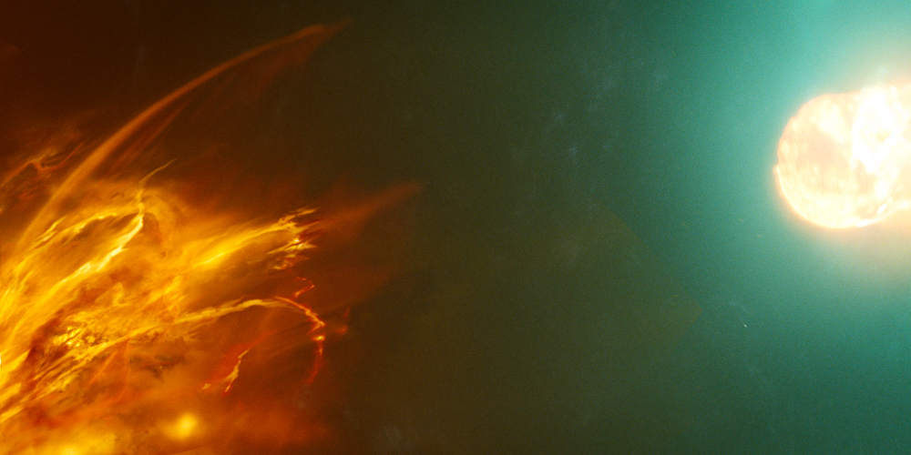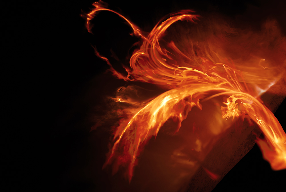 Entirely free form painting to create prominence, subsequently warped with animation in comp.