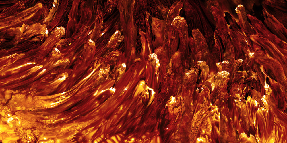 As the ship descends into the sunspot, closeups of the tendrils around the edges were needed. These finger-like features had to be separated and delivered of several separate layers to that they could be overlaid and applied with an animated warp in comp.