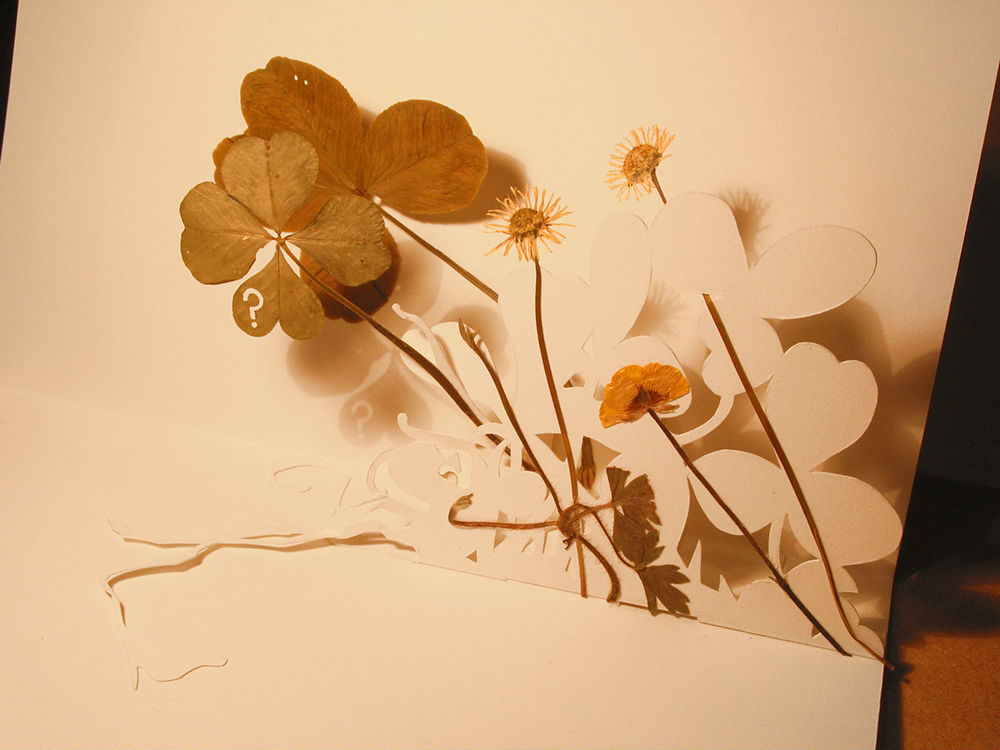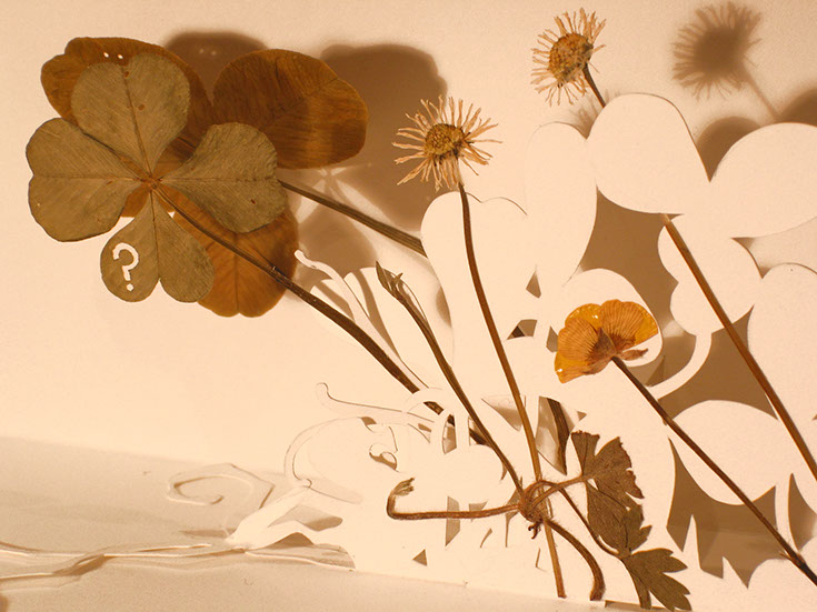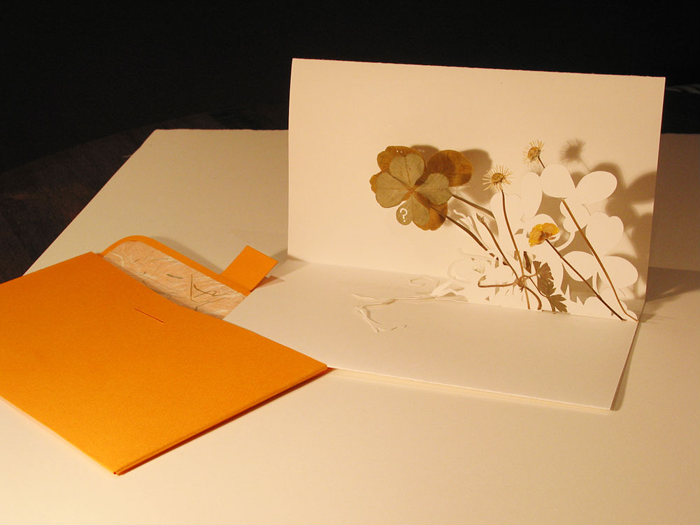 Pressed leaves, card, glue and a scalpel, using a simple shelf technique.