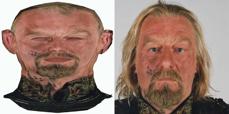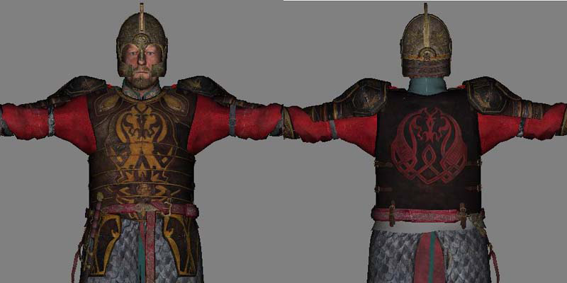 Texturing of large asset: Theoden (King of Men)'s digital double. These include several large texture colour maps of 2k or more, complete with corresponding displacement and specular maps. I say that it was a large asset, but at the end of the day, This digi-double only appeared in one quick shot, an inch high and with motion blur!